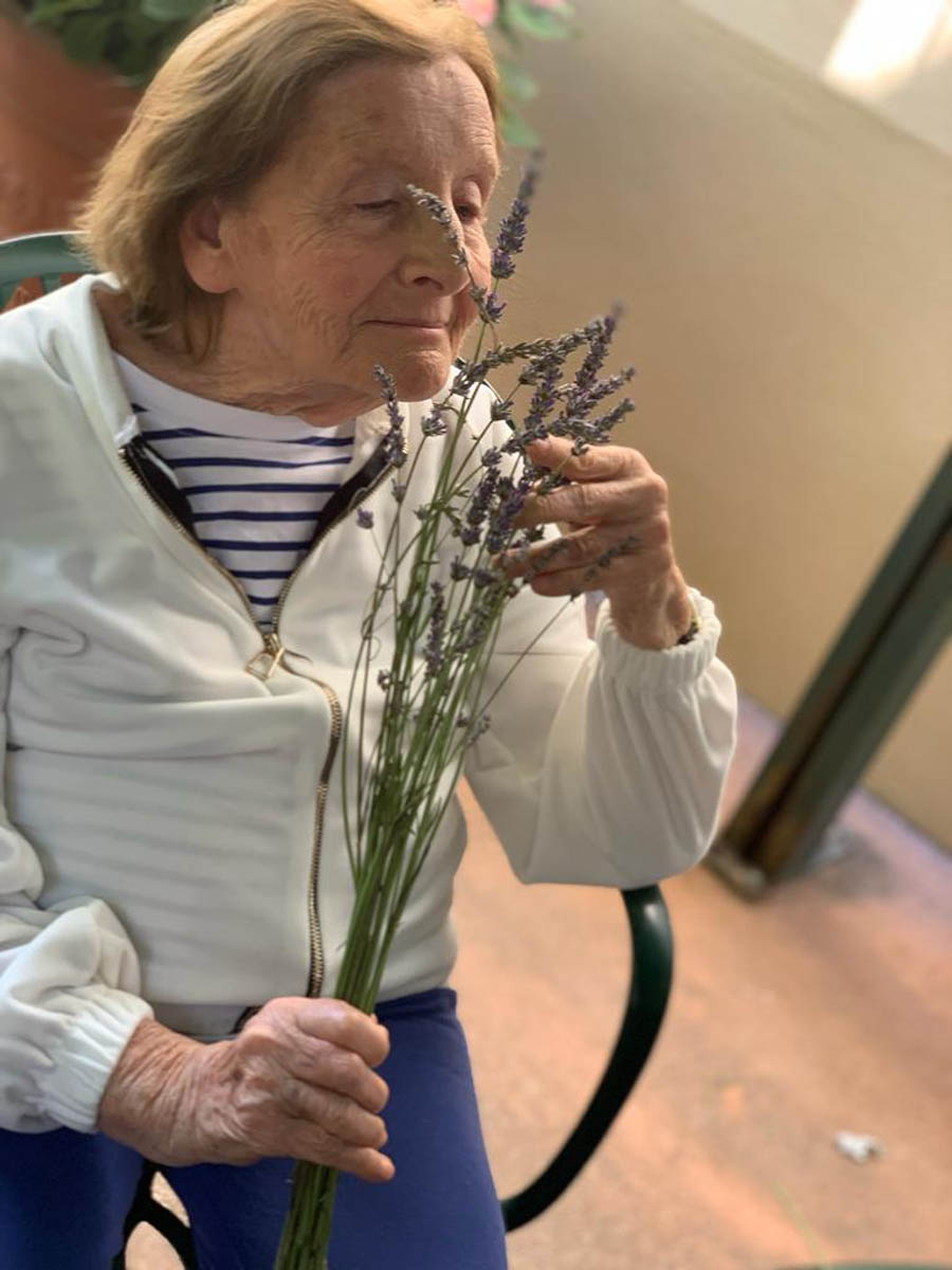 Durante questa attività, abbiamo accompagnato la nostra esperienza con le melodie delle canzoni francesi, che ci hanno permesso di immaginare di trovarci in un vasto campo di lavanda nella splendida Francia. La lavanda ha numerosi benefici per i nostri ospiti anziani, in particolare stimola i sensi in modo naturale e spontaneo, riportando alla mente situazioni piacevoli e familiari che infondono un senso di sicurezza e contentezza.