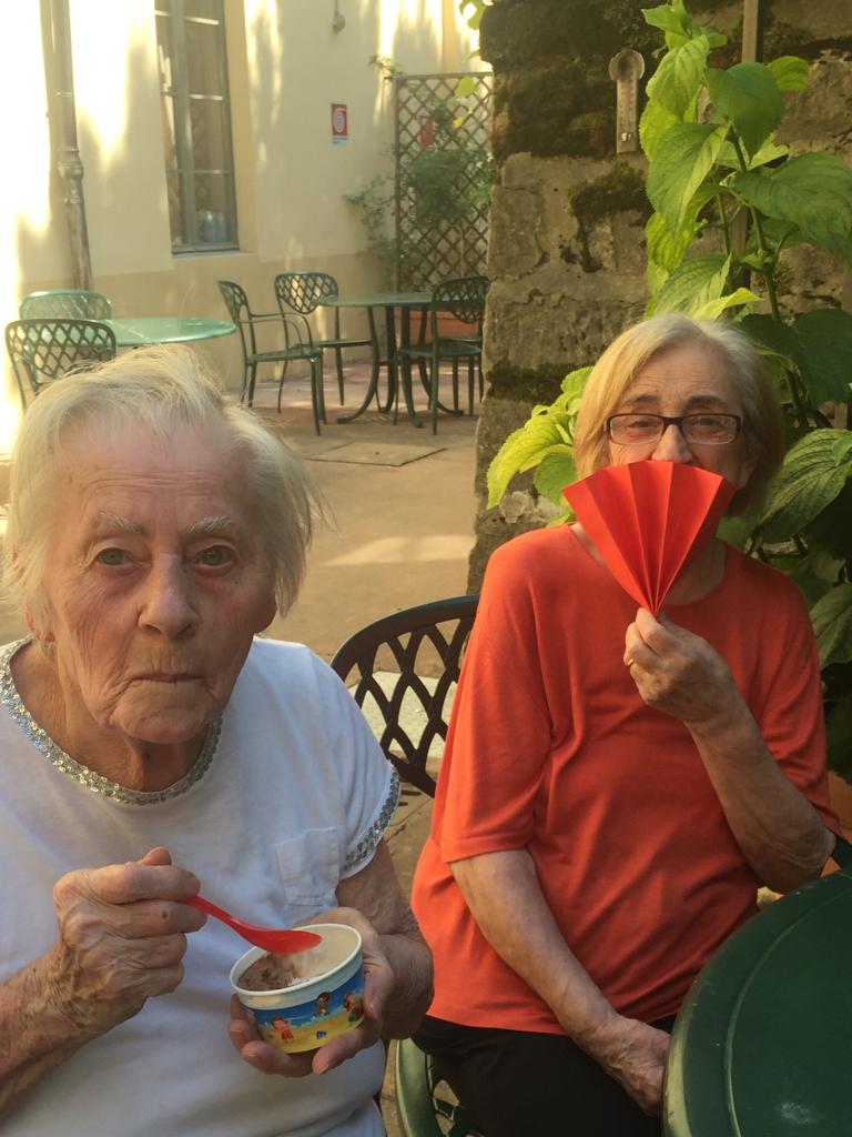 In un bel giardino fiorito reso ancora più festoso e allegro con ghirlande floreali sotto agli ombrelloni i nonni hanno consumato una bella e fresca merenda a base di gelato, bibite e succo di frutta.