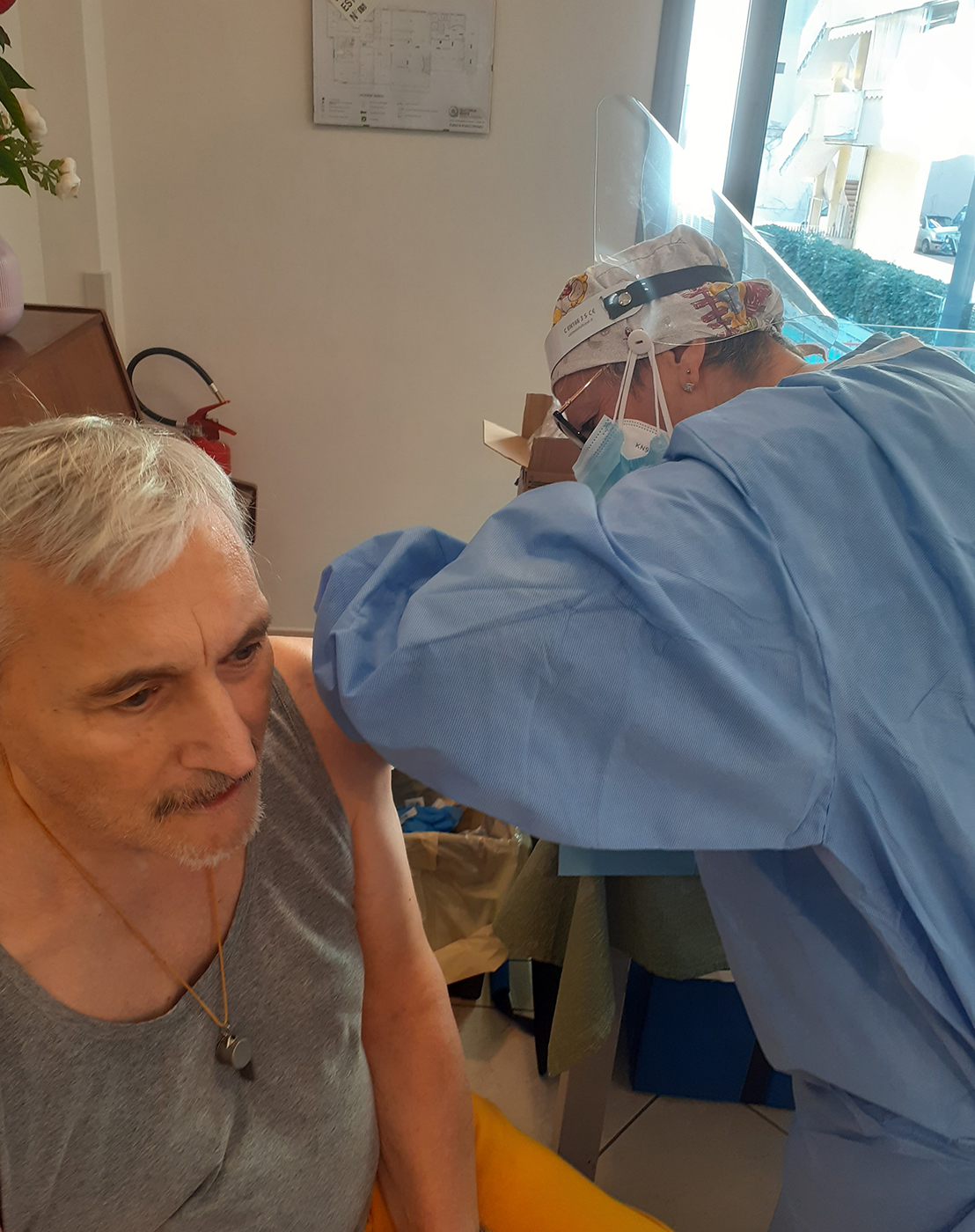 Nella mattinata di martedì 9 febbraio, la CRA QUISISANA Rimini ha accolto in struttura, per la seconda volta, l’équipe dell’Ausl Romagna che si è occupata di somministrare la seconda dose del vaccino anticovid19 ad ospiti ed operatori. “Gli ospiti della struttura, così come i loro familiari, hanno atteso con ansia la seconda somministrazione – afferma Valentina Sciumbata, coordinatrice di struttura – la protezione e la possibilità di essere immuni al covid19 ha superato ogni timore”. Pensiero che ha accomunato tutti gli operatori del gruppo di residenze QUISISANA che hanno aderito alla campagna vaccinale con grande entusiasmo e responsabilità dimostrando attenzione per la propria e l’altrui salute.