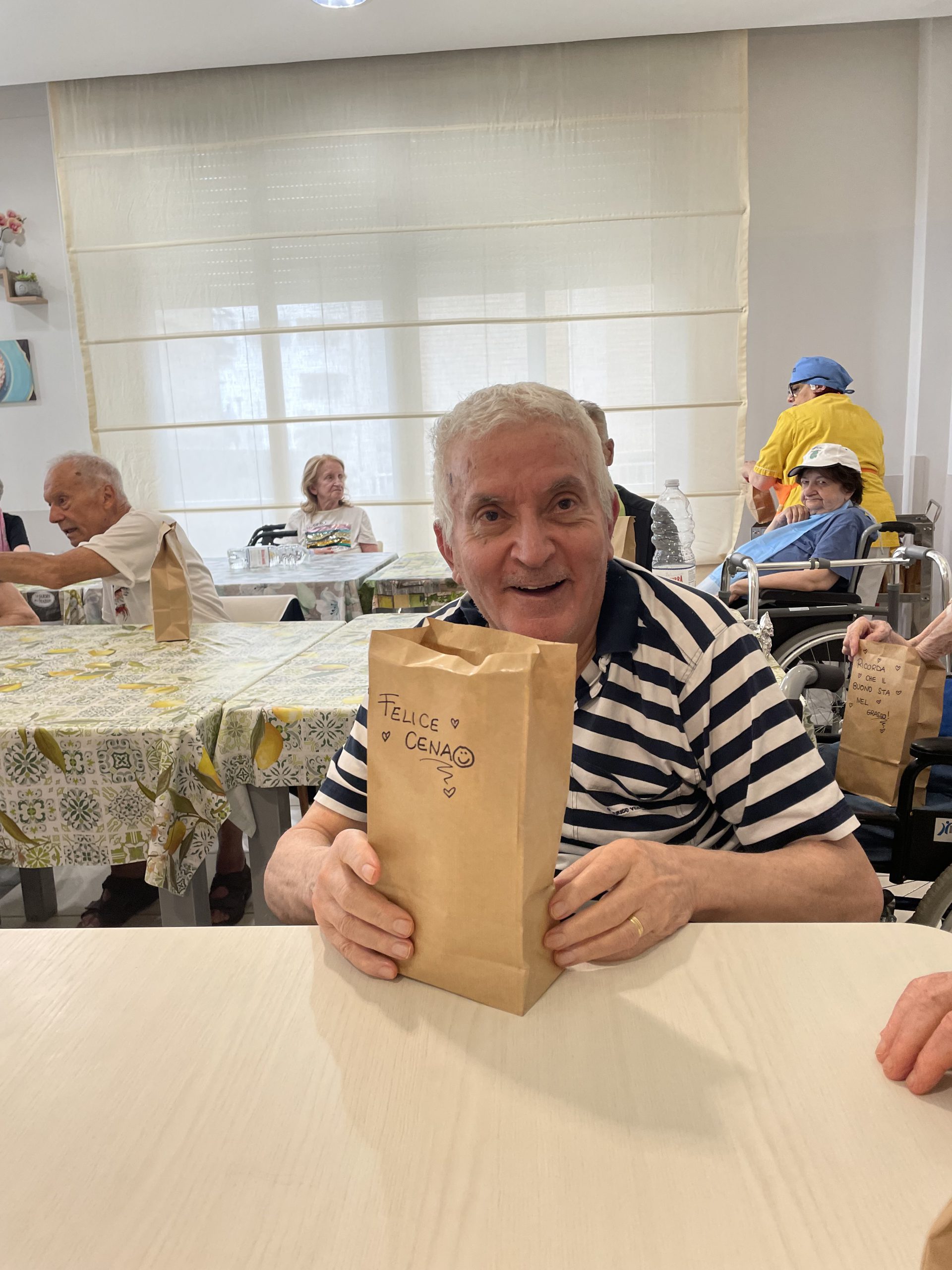 Oltre alla visione della partita, gli ospiti hanno potuto gustare un delizioso panino con hamburger e patatine, preparato con cura dagli chef della struttura. Un pasto a tema Italia, con bicchieri che riproducevano la bandiera tricolore e sacchetti in stile McDonald’s adornati con frasi simpatiche e patriottiche. Le simpatiche frasi hanno suscitato l’ilarità dei nonni, che hanno apprezzato con gioia questo momento di condivisione.